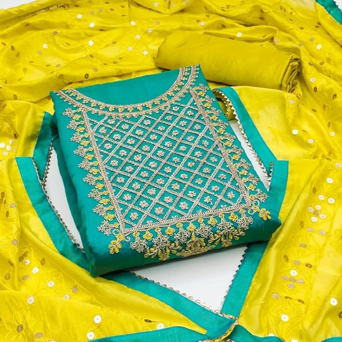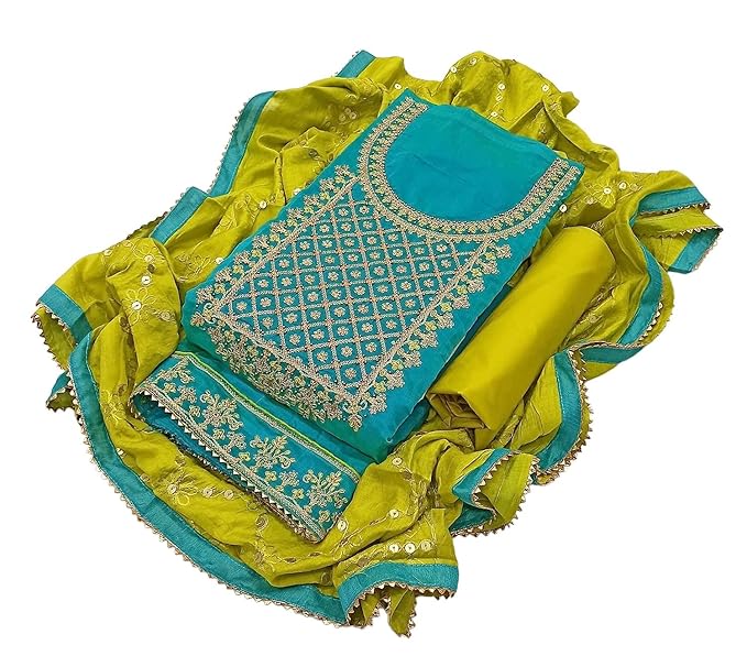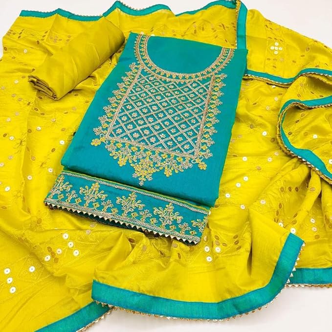 Be the first to review “Women’s Heavy Cotton Embroidery Codding Work Unstitched Salwar Suit Dress Material With Dyable Chanderi Sequence Work Dupatta (Free Size_Multi Color)”